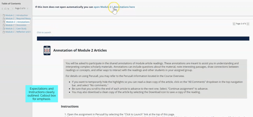 Adding custom graphics such as icons and simple HTML elements such as a header that matches the university brand creates a better learner experience by providing cues for certain materials and chunking the material visually.