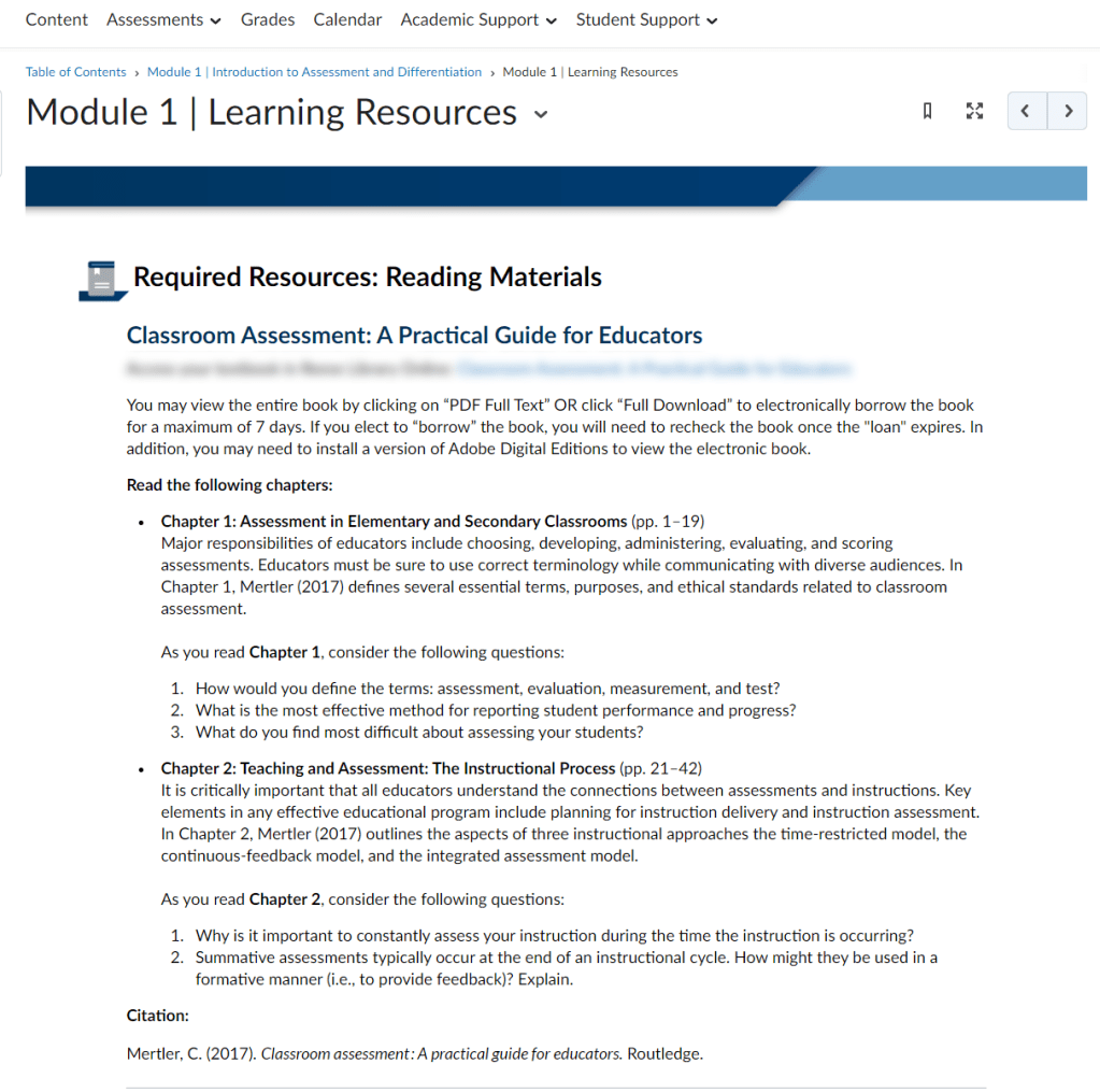Videos and podcasts were embedded to ease access to these resources. As with the readings, focus text was included as well as a full citation and link when possible.