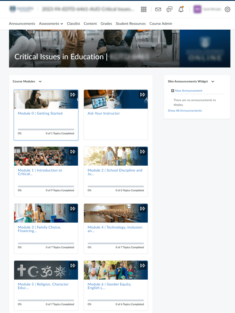 Each course started with a Course Overview module that helped to orient the students to the course objectives as well as the new technology that they would be interacting with.